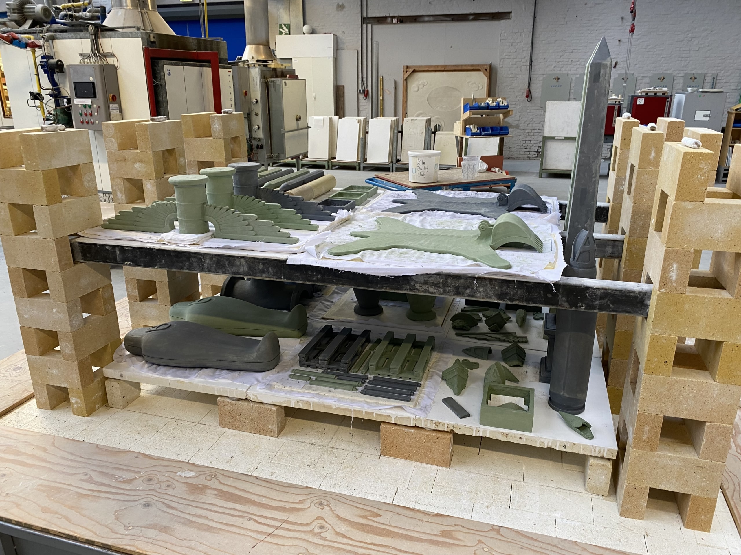 Balster produced a series of plaster molds, cast from 3D-printed positives, to press-mould his sculptural series in limited multiples. Rather than using glazes, Balster coloured his clay with chromium oxide and made many colour/temperature tests to arrive at the just the right shade of green. He also worked with black clay.